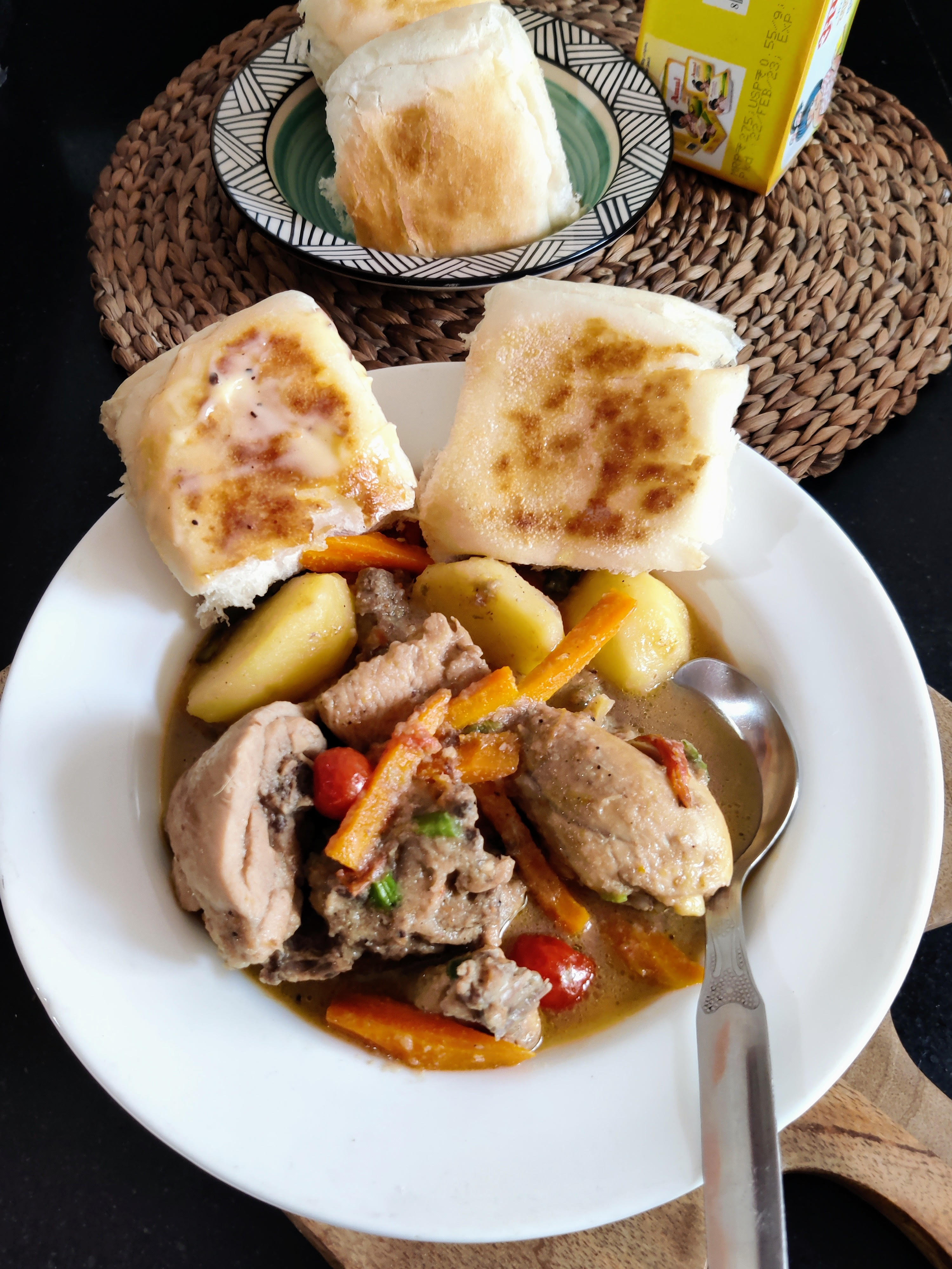 Our chicken stew is a meal in itself, full of protein and veggies. It's cooked in butter and we serve the stew with 2 pieces of buttered pav. A perfect meal for your children too.